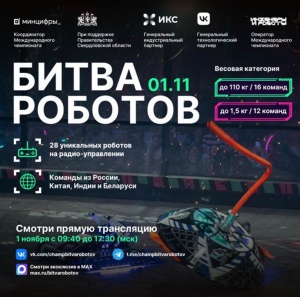 БИТВА РОБОТОВ — МЕЖДУНАРОДНЫЙ ЧЕМПИОНАТ, ГДЕ РОБОТЫ СРАЖАЮТСЯ В ЗАХВАТЫВАЮЩИХ ПОЕДИНКАХ. Это место, где креативность встречается с технологиями, а мечты о будущем становятся реальностью. Машинами управляют команды разработчиков — опытные ...
