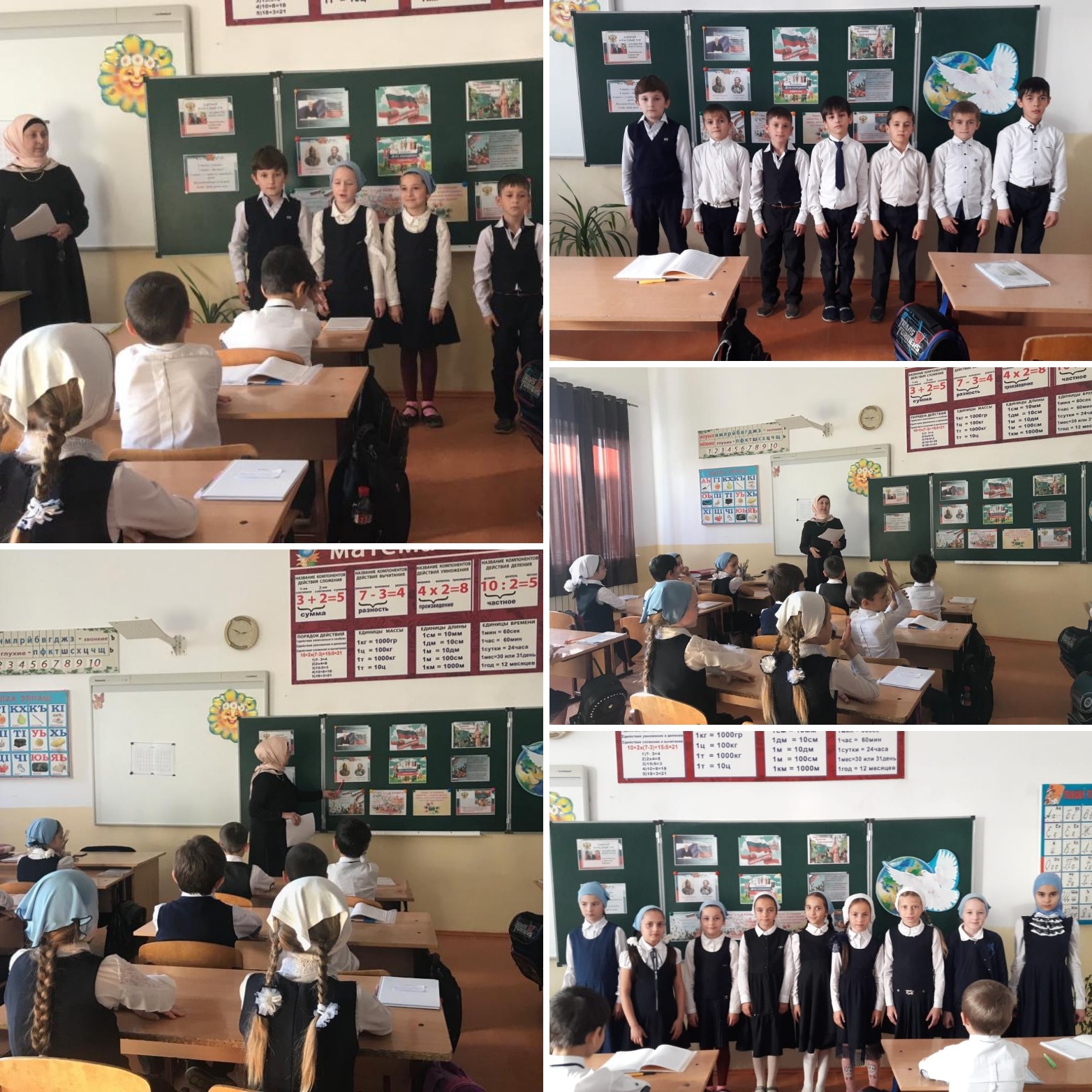 Аблуллаева Зарван Джандаровна провела в 3 "А" классе классный час, посвященный Дню народного единства. В начале классного часа дети просмотрели презентацию. Далее учитель объяснила смысл слов единение, патриоты и рассказала о Кузьме Минине и о Дмитрии Пожарском, а так же, что произошло 400 лет назад. Прозвучала песня «Богатырская наша сила». Далее учащиеся рассказали стихотворения «Не забудет наш народ доблесть наших воевод». В конце занятия дети рисовали рисунки по теме «Наша любимая Россия».