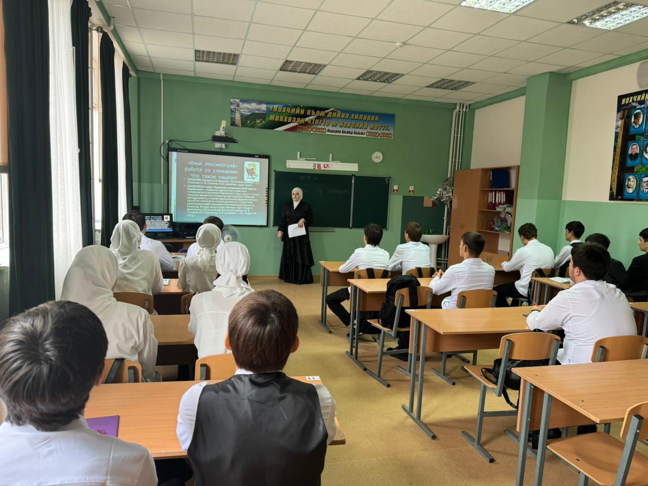 03.09.2024Сегодня, 03.09.2024г., заместитель директора по УР Бачиева Ж.Д. провела классный час по теме «Мир без нацизма» в 10 классе совместно с сотрудниками ФСБ России в Гудермесском районе.