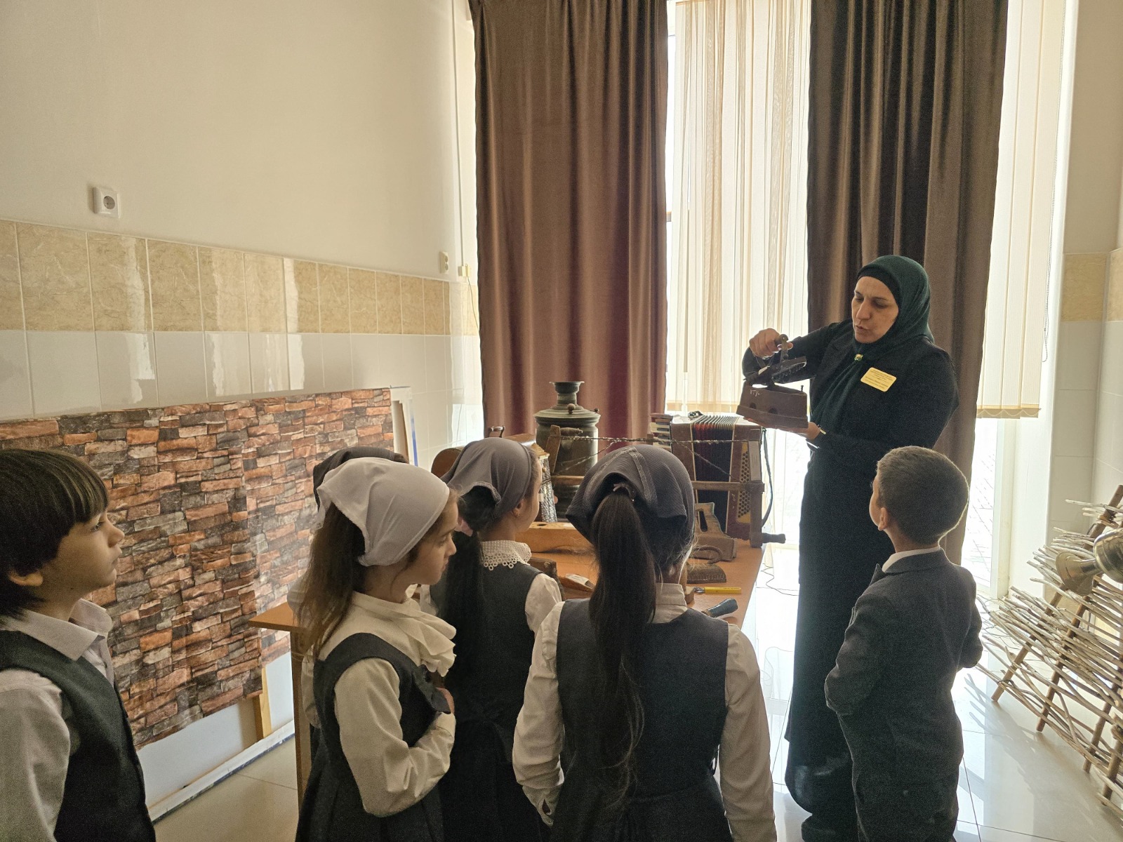 Цель экскурсии:- Ознакомить учащихся с музыкальными инструментами чеченского народа, их историей, значением и использованием в культурных традициях. Экскурсия была посвящена изучению уникальных музыкальных инструментов чеченского народа, таких как дечик пондур. Учащиеся узнали о происхождении этих инструментов, а также о роли музыки в жизни и праздниках чеченского народа. Это поможет развить интерес к культурному наследию и традициям. В результате экскурсии учащиеся не только получили новые знания о музыкальной культуре чеченского народа, но и смогли увидеть инструменты в действии, послушать их звуки и понять, как музыка объединяет людей и передает традиции из поколения в поколение.