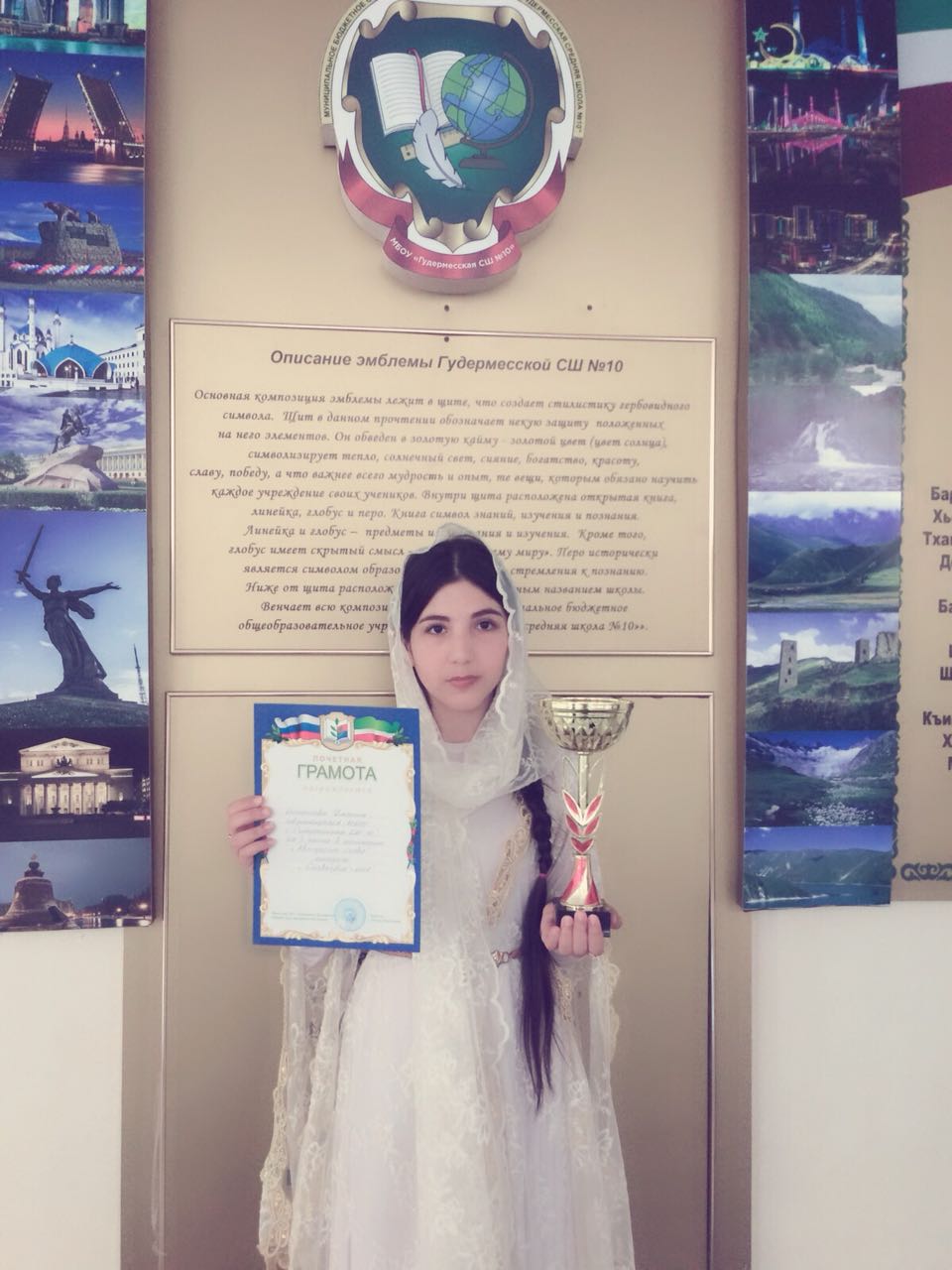 Исламова Джамиля, ученица 9 в класса, заняла первое место в номинации "Авторское слово". Стихотворение "Вехар ву вайца", посвященное герою России А-Х.Кадырову.